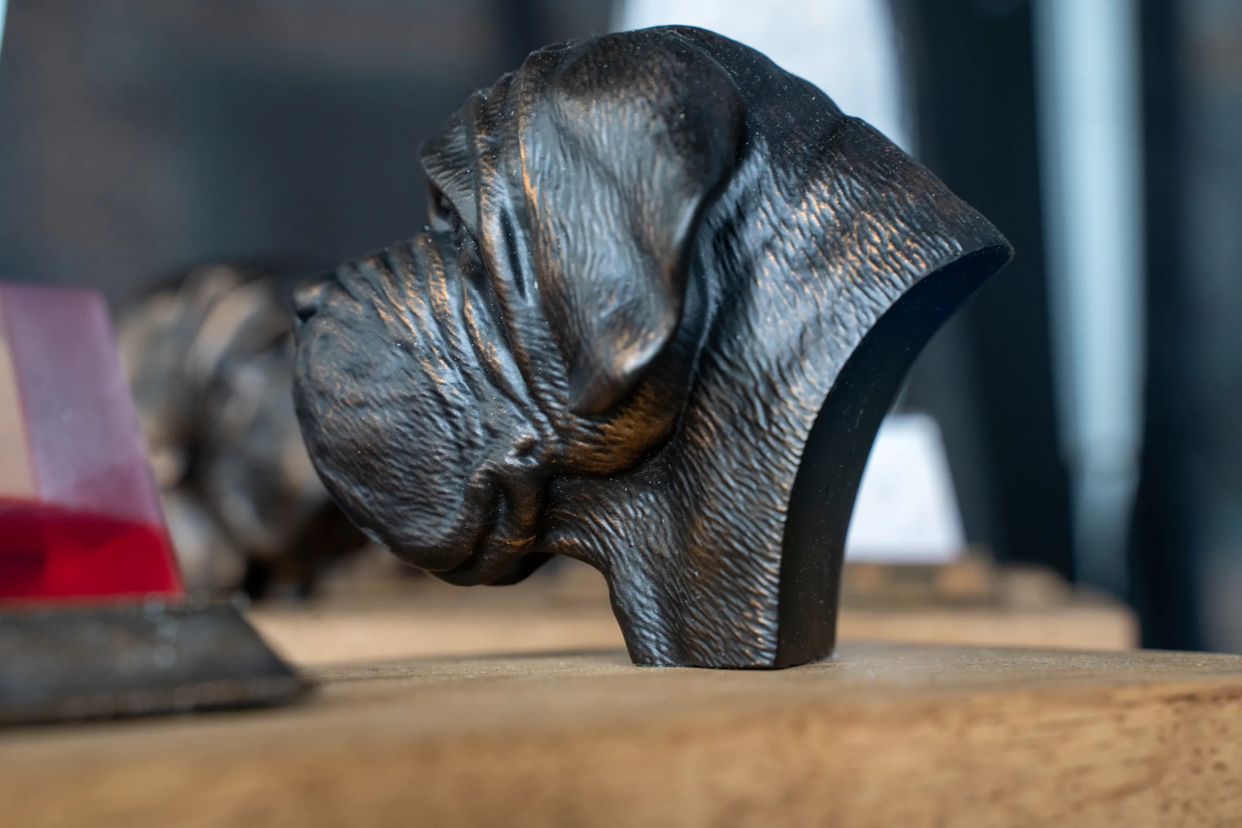 - Gittin’s Jolene of Sevenoaks at Cwmtysswg (Imp DEU) just under 2 1/2 years substantial apricot bitch with beautiful true black pigment to face and ears. Good ear placement and stop nice eye and correct wrinkling when alert, deep front level top line and a nice wide angulated rear, well covered frame. Difficult to assess movement as playing up for handler today.