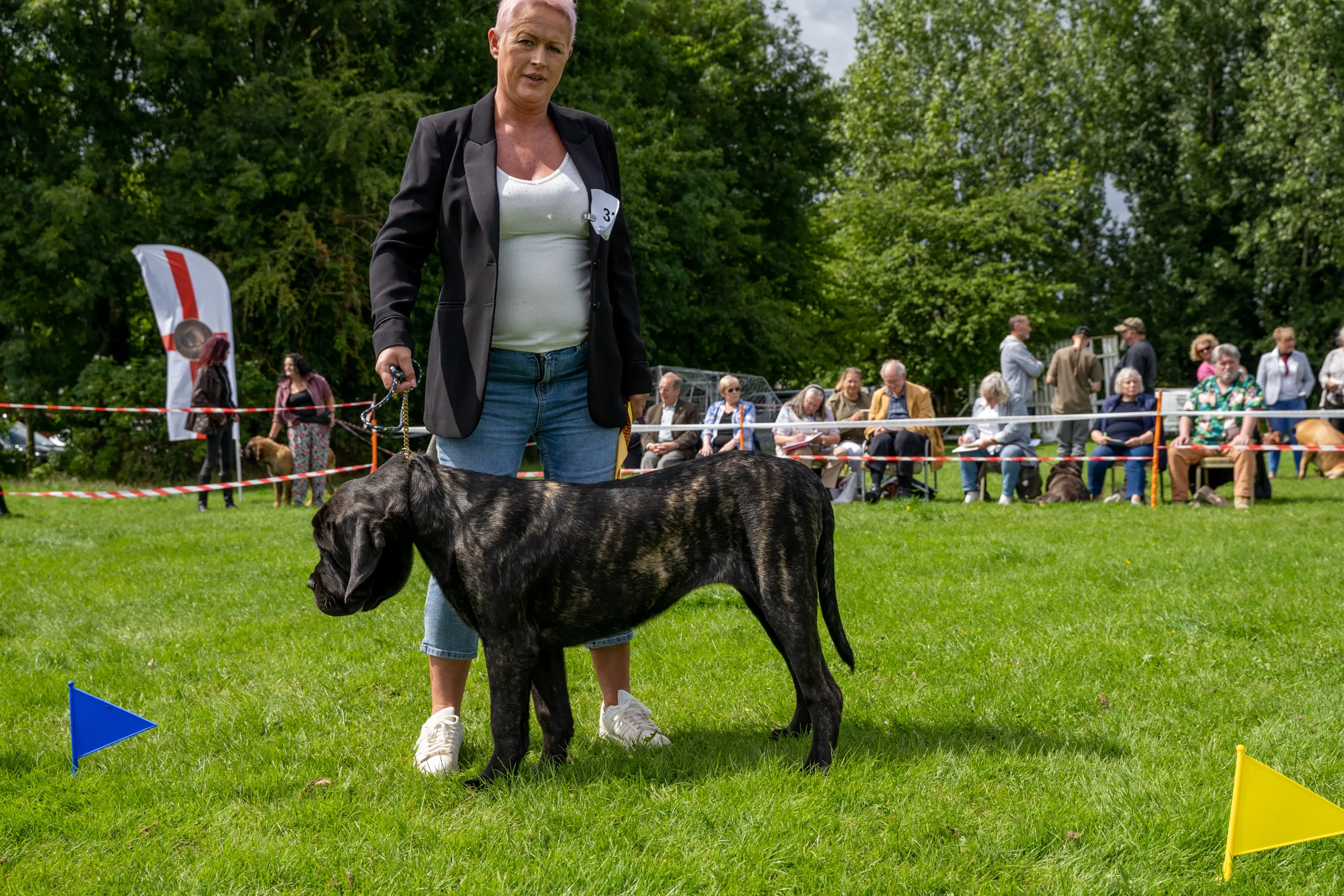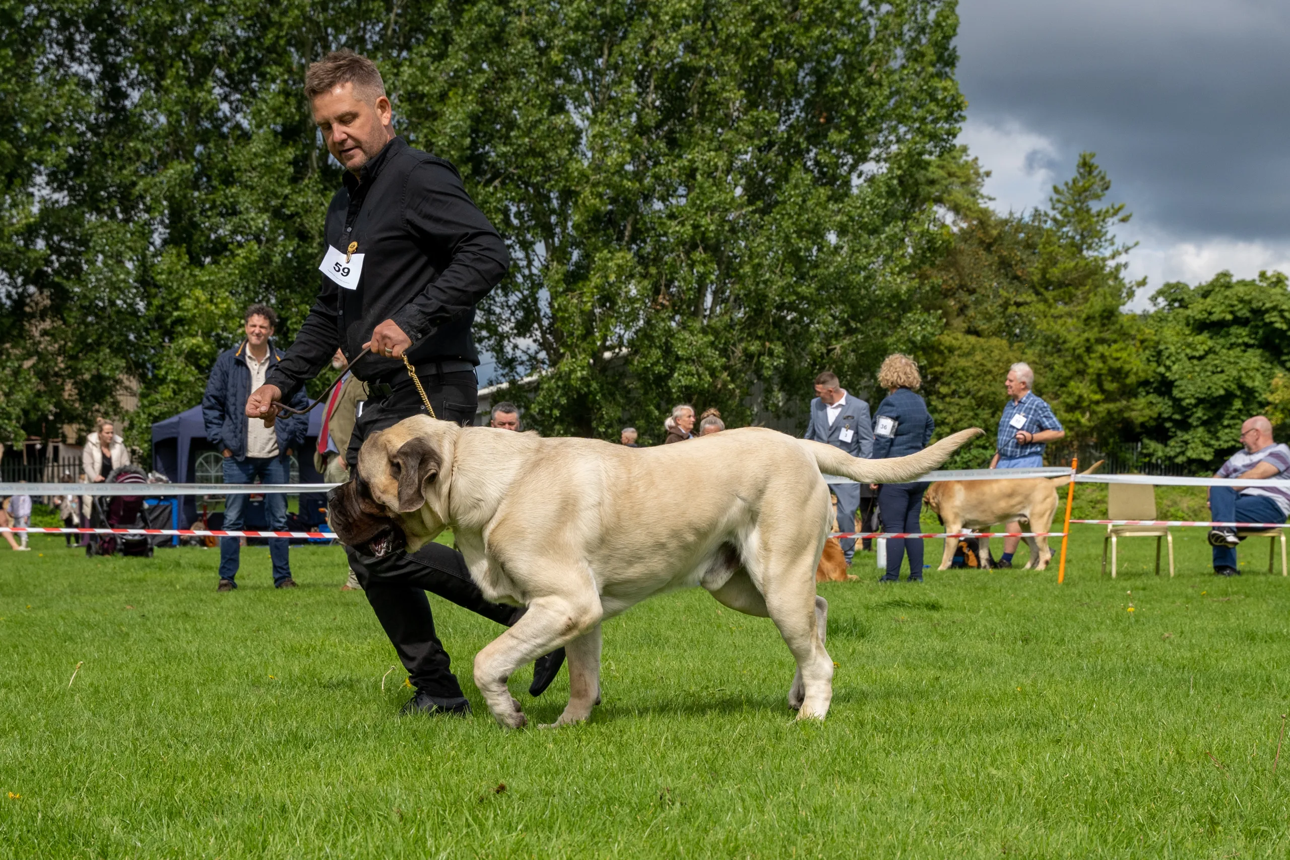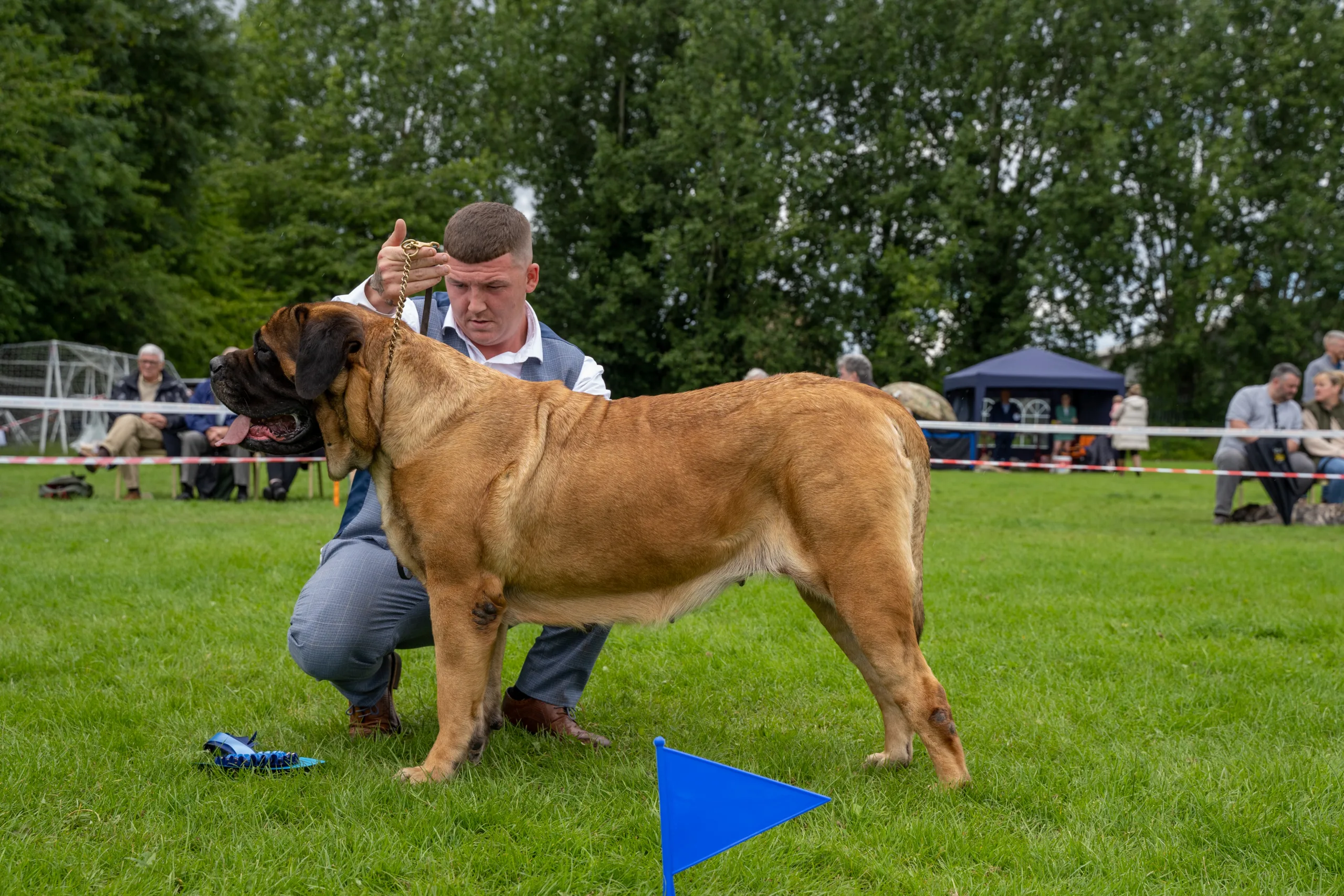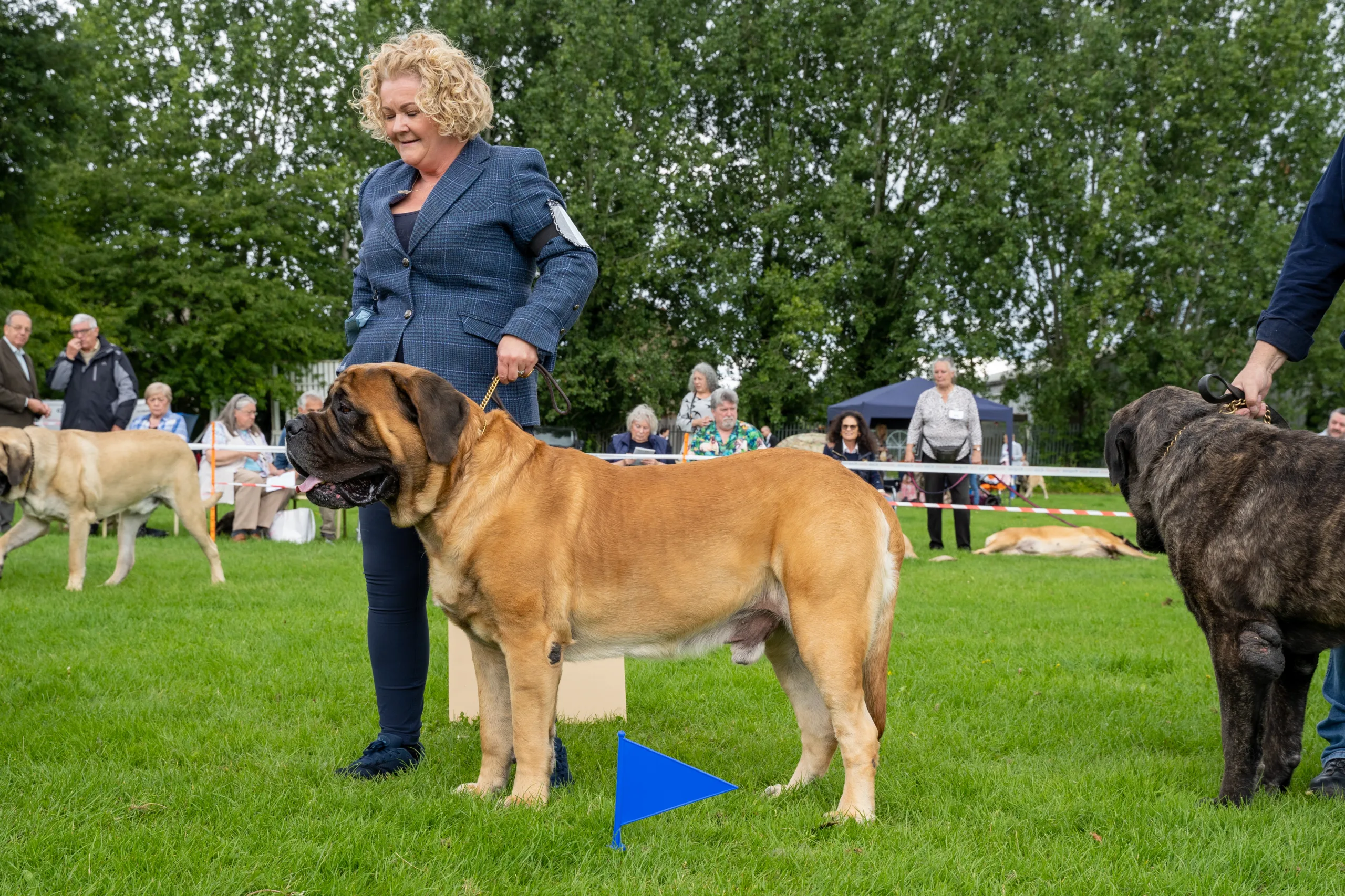 - Chamber’s Elljayart The Great Master of Gigantiffz. Well grown substantial 17 mth fawn. Square head with good stop, Broad muzzle correct bite, nice expression and dark eye. Strong neck, straight front, well let down to chest, deep ribs, nice length of back, and turn of stifle, tail correct to hock, moved well maintained top line.